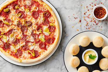 The American: A perfect choice for pepperoni fans, with spicy pepperoni, mozzarella, and signature tomato sauce for a pizza that hits the spot.